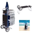 Carrinho De Praia P/ 5 Cadeiras Vira Mesa Alumínio Com Bolsa Azul / Preto