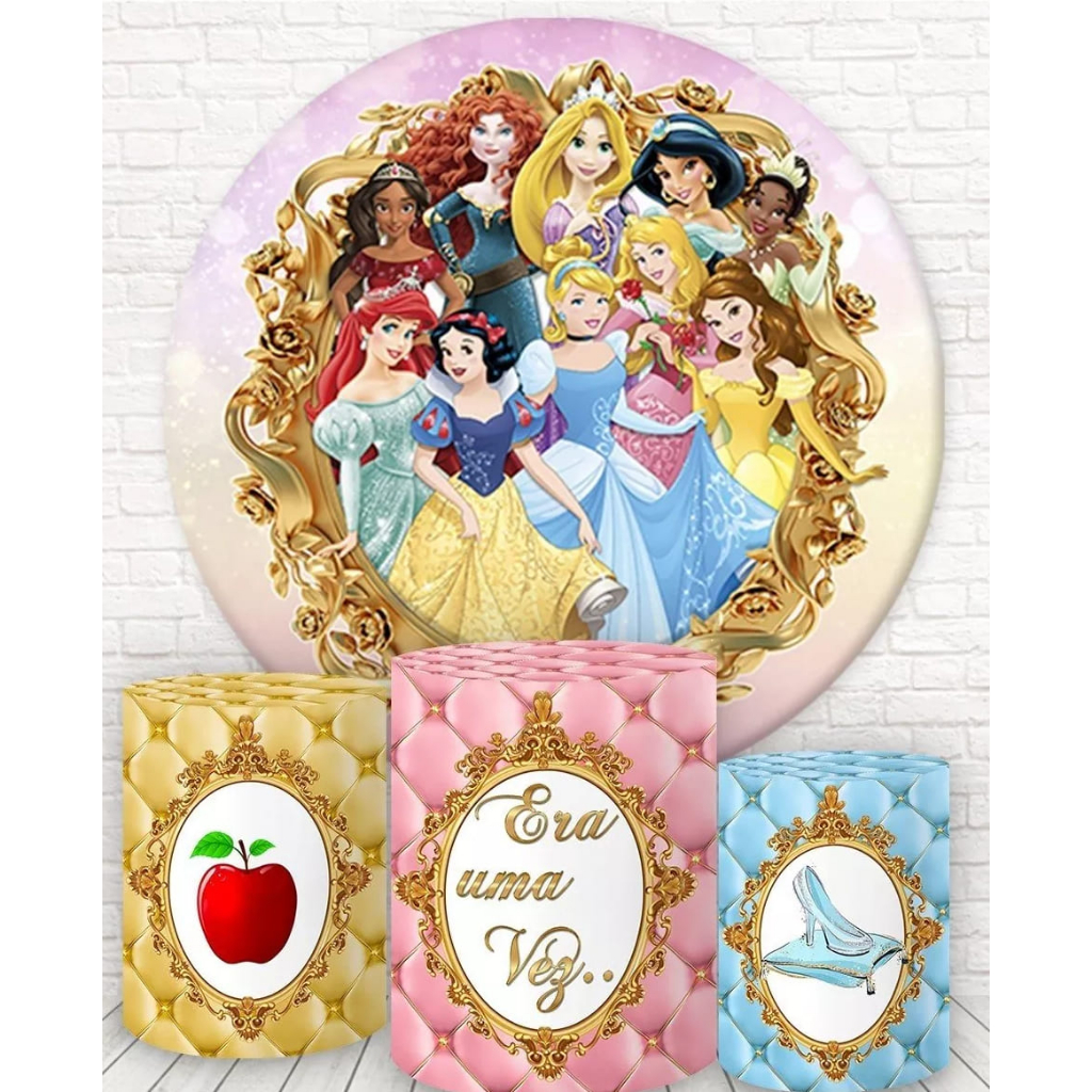 Kit Capa Painel + Trio Capas de Cilindros Sublimado Tema Princesas
