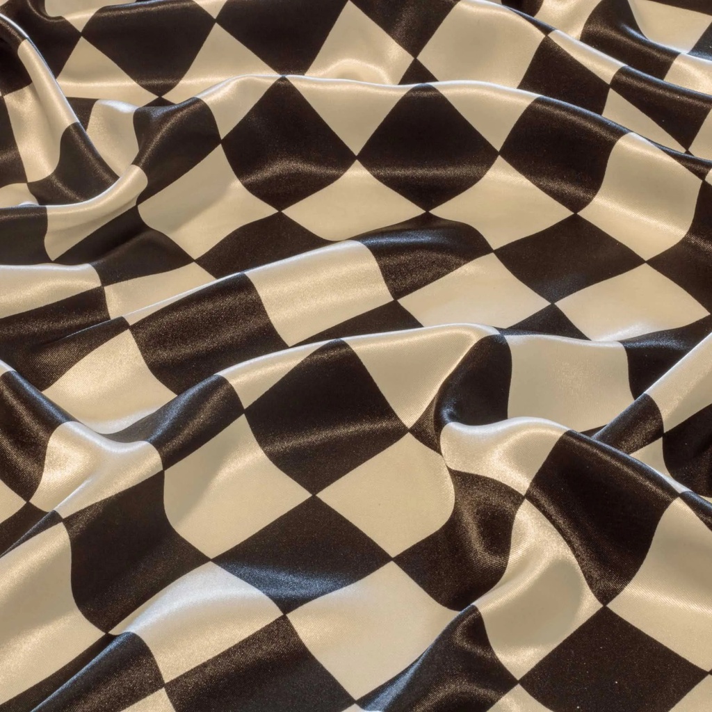 Tecido Cetim Losangos Fórmula 1 Preto e Branco 1,40x1,00m