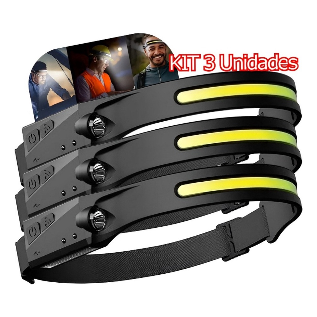 Kit 3 Lanterna Cabeça Led Headlamp Forte Recarregável Farol Resiste A Água Profissional Prova D'água Fita Ajustável