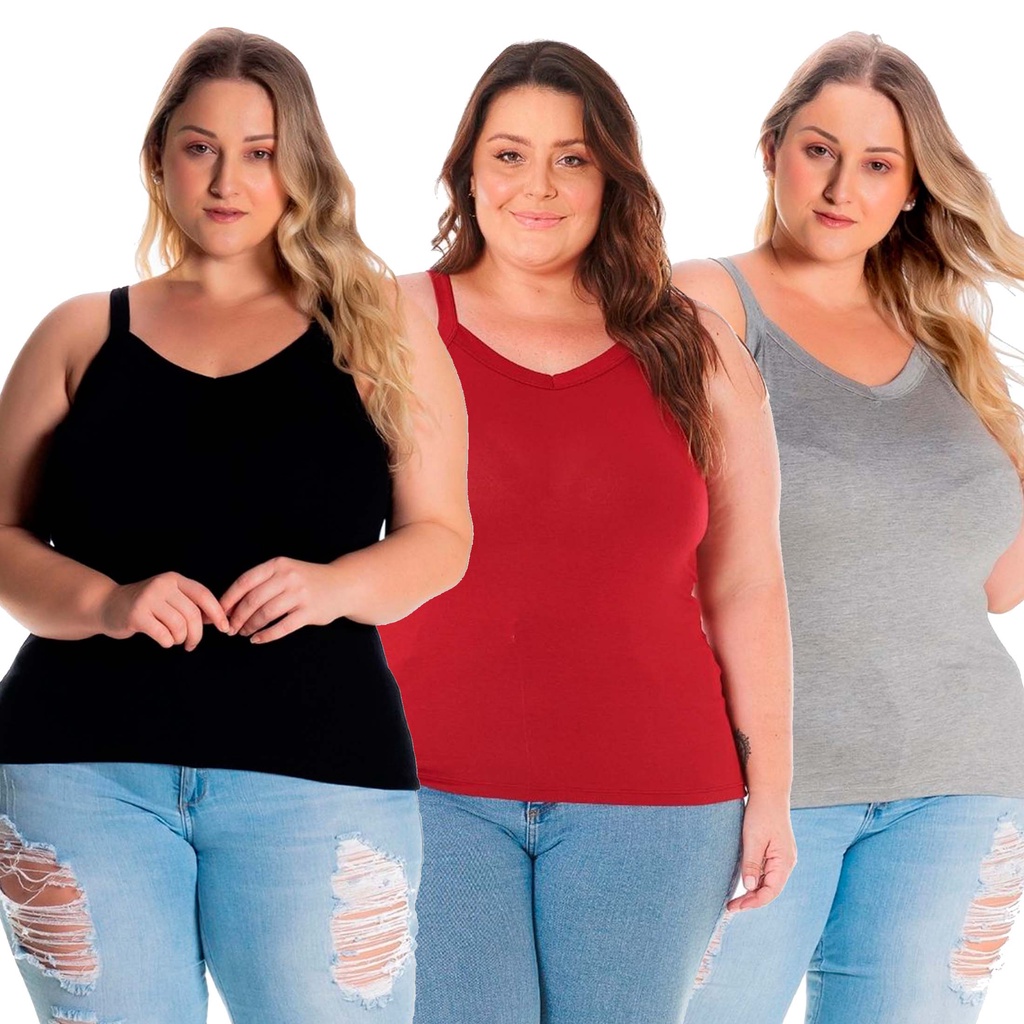 Kit 3 Regatas Plus Size Femininas Confortáveis para Mulheres