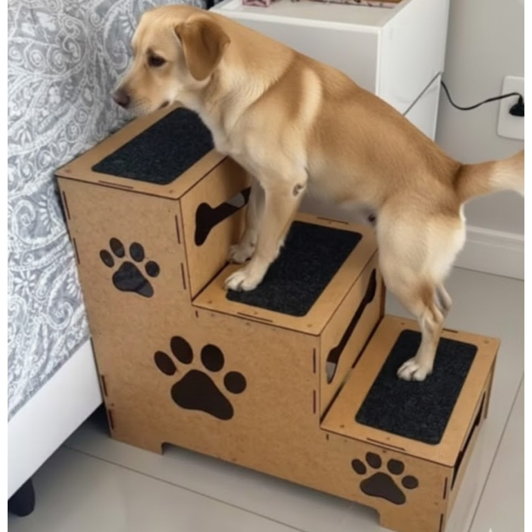 Escadinha Escada Em Mdf P/ Cães e Gatos Com carpete Antiderrapante e 3 degraus