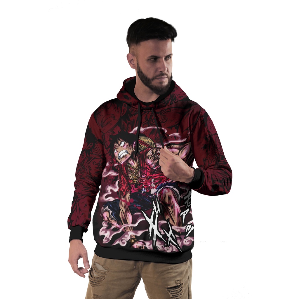 Moletom Canguru Masculino Premium Anime Luffy Nika Gear 5 Blusa Feminina Strretwear Algodão