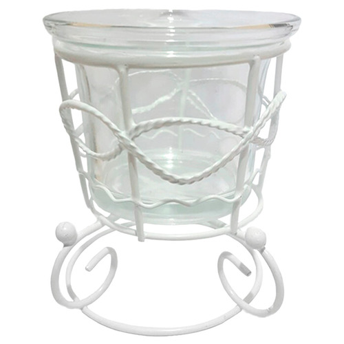Castiçal Decorativo Branco Aramado Ferro Provençal com copo vidro