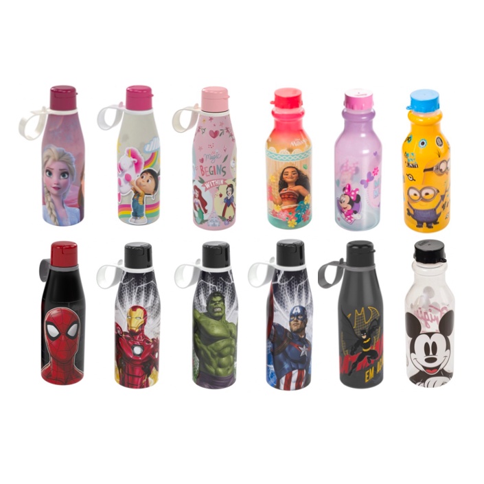 Garrafinha Infantil de agua Personalizado 500ml BPA Free Minnie Mickey Frozen Princesas Homem Aranha Hulk Capitao America Minions