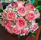 Buquê de Noiva com 15 rosas na cor rosa e aster branco