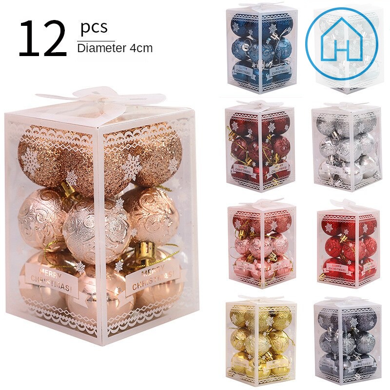 12 PCS/Box Decoração De Bolas De Natal Coloridas/DIY Conjunto Brilhantes De Plástico Árvore Pingente Ornamento/Cores Para Sala De Estar Festa De Ano Novo