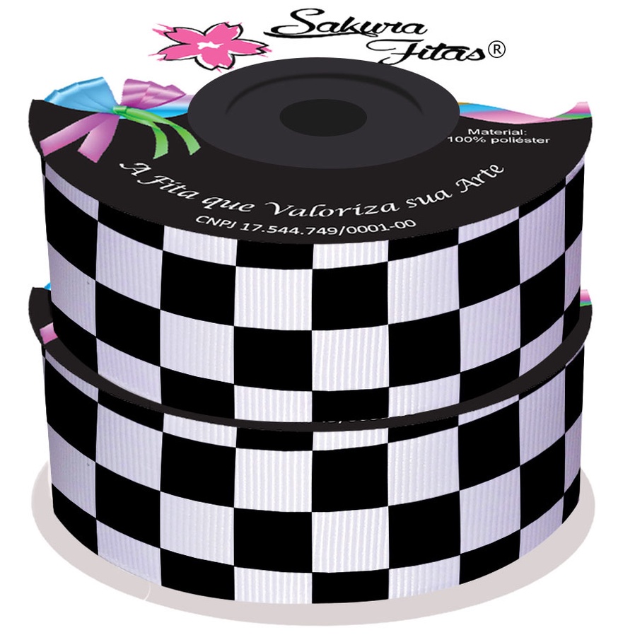 Fita de Gorgurão Xadrez Preto e Branco 38mm x 10m ref.0481
