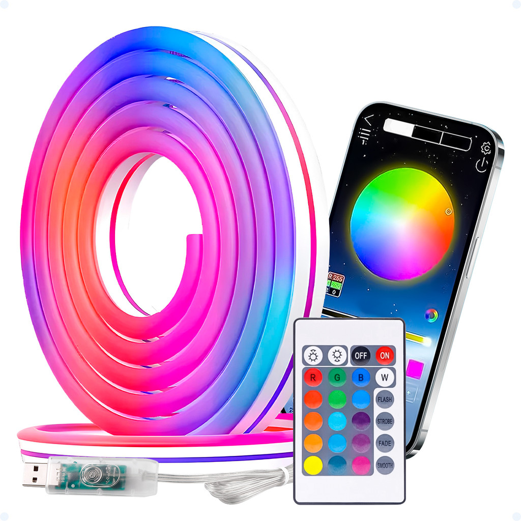 Mangueira Led RGB Fita 3 Metros Grande Programavel Com Controle E Aplicativo Bluetooth