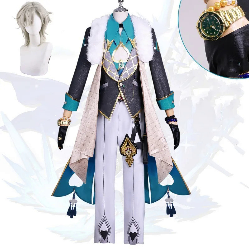 Aventurine Cosplay Costume Wig Anime Jogo Peruca Festa De Halloween Homens Fantasia Acessórios De Orelha