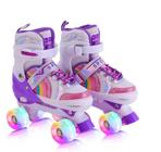 Patins Arco Íris Roxo Infantil 4 Rodas Sports Ajustável com luz de LED Com e Sem Kit de Segurança