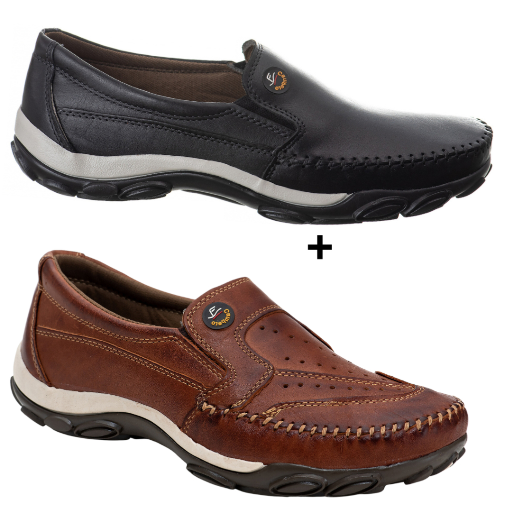 Kit 2 Sapatilha Mocassim Slip Masculino Marrom Preto Campero Couro