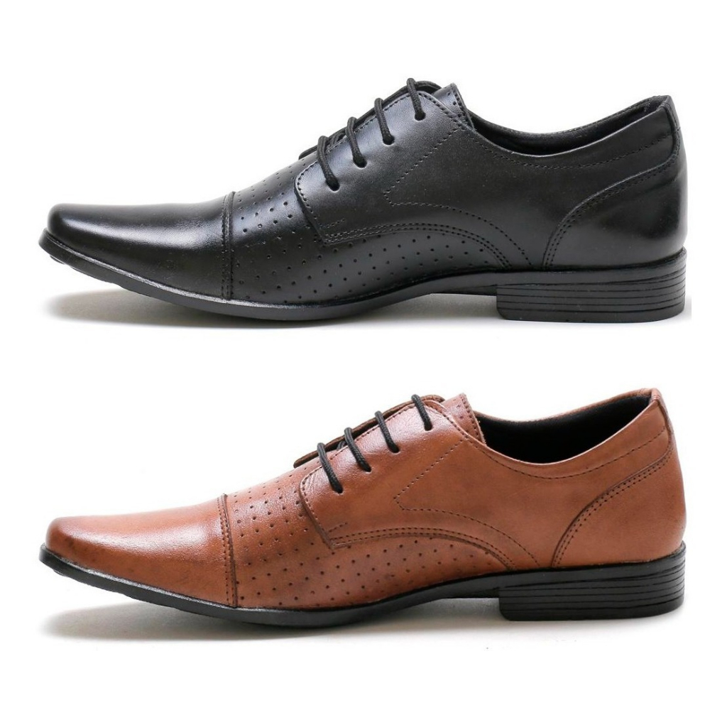 Sapato Social Masculino Leve Confortavel Couro legitimo kit 2 pares