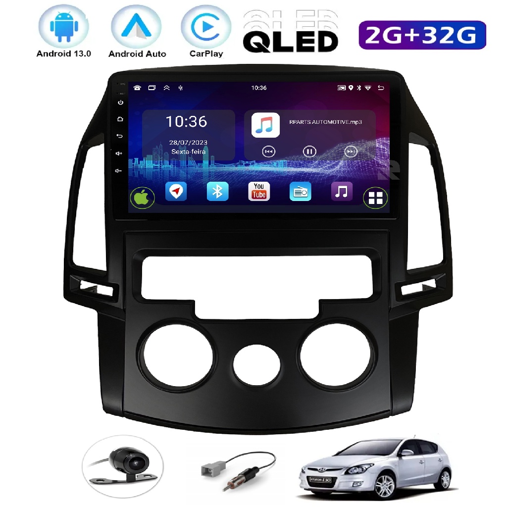 Kit Multimídia I30 2009 / 2012 Ar Analogico 9 Pol CarPlay AndroidAuto USB Bt Radio