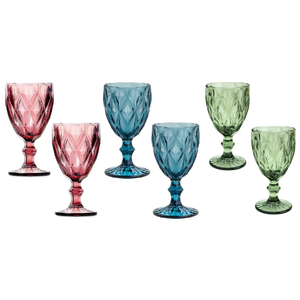 Conjunto com 6 Unidades de Taças de Vidro Diamond 340ml Color KE HOME