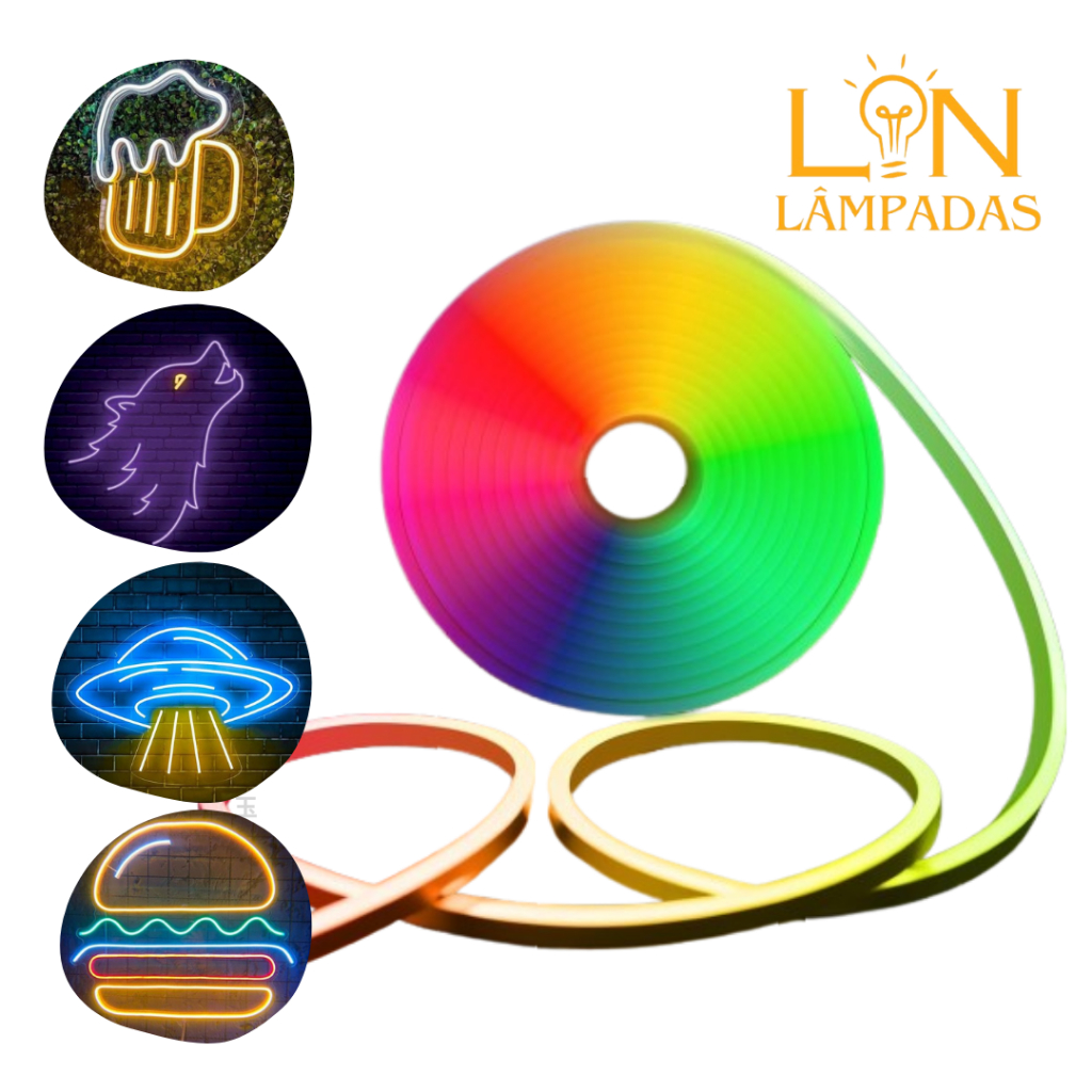 Fita Mangueira LED Neon RGB 5 Metros, Controle Touch Wireless, Com ou Sem Fonte, Resistente à Água