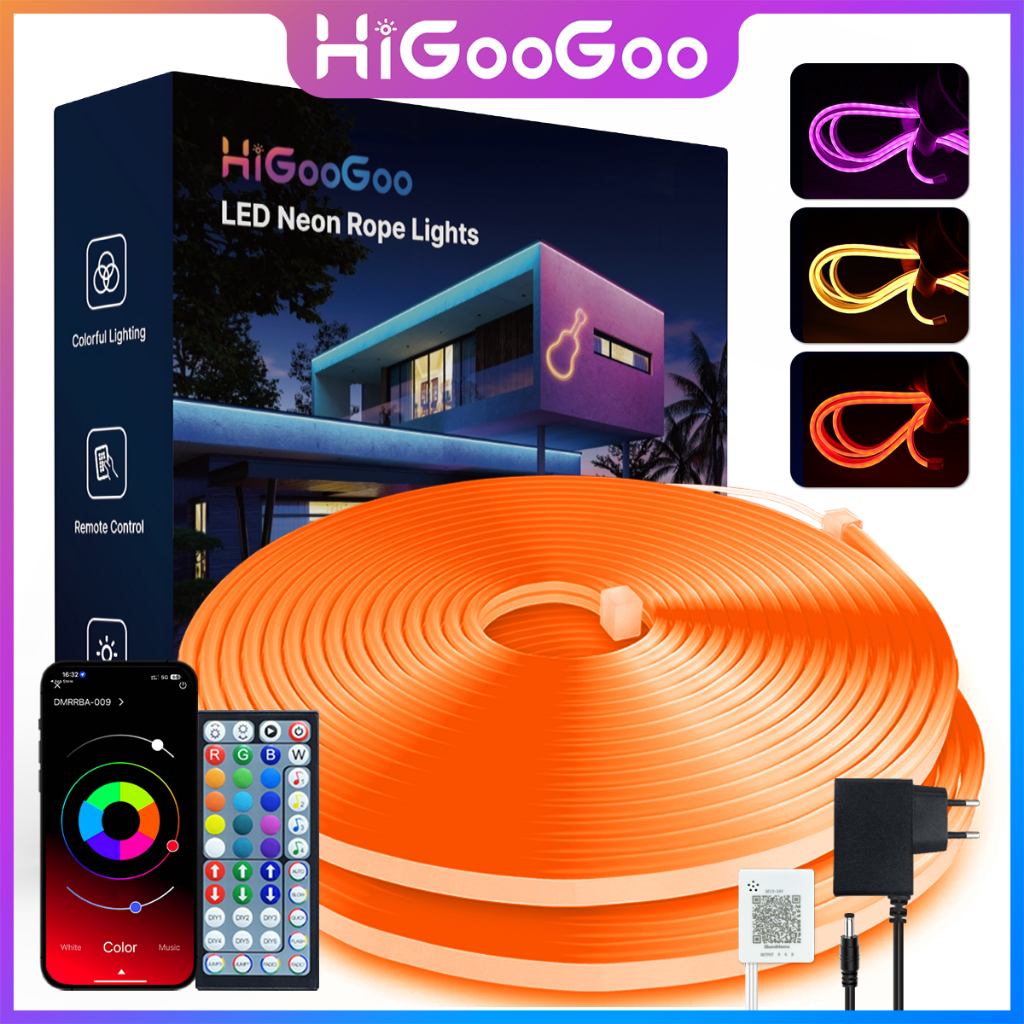 Fita Led Mangueira Neon RGB 5/10 Metros Controle Remoto Bluetooth IP65 À Prova D'água Flexível Luz Com Fonte