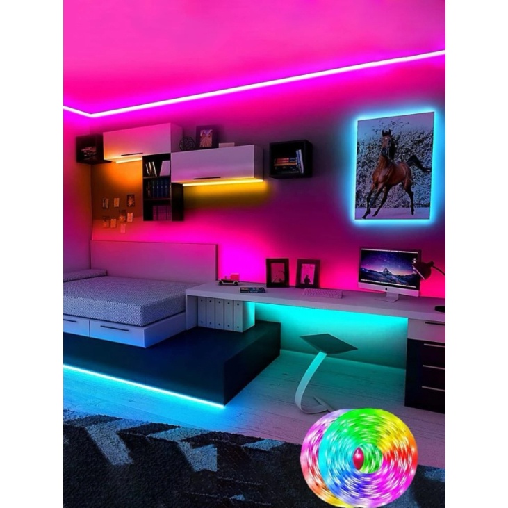 Mangueira Led RGB Fita 3 Metros Grande Programavel Com Controle E Aplicativo Bluetooth