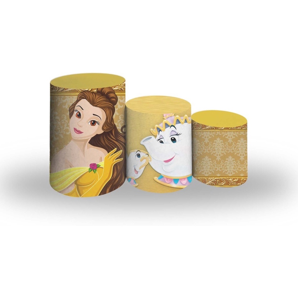 Capa Trio de cilindro Sublimado A Bela e a Fera Em Tecido C/elástico Veste fácil