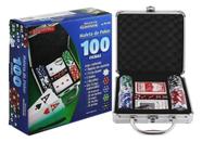 Maleta Jogo de Poker Profissional 100 Fichas Numeradas Baralhos e Dados