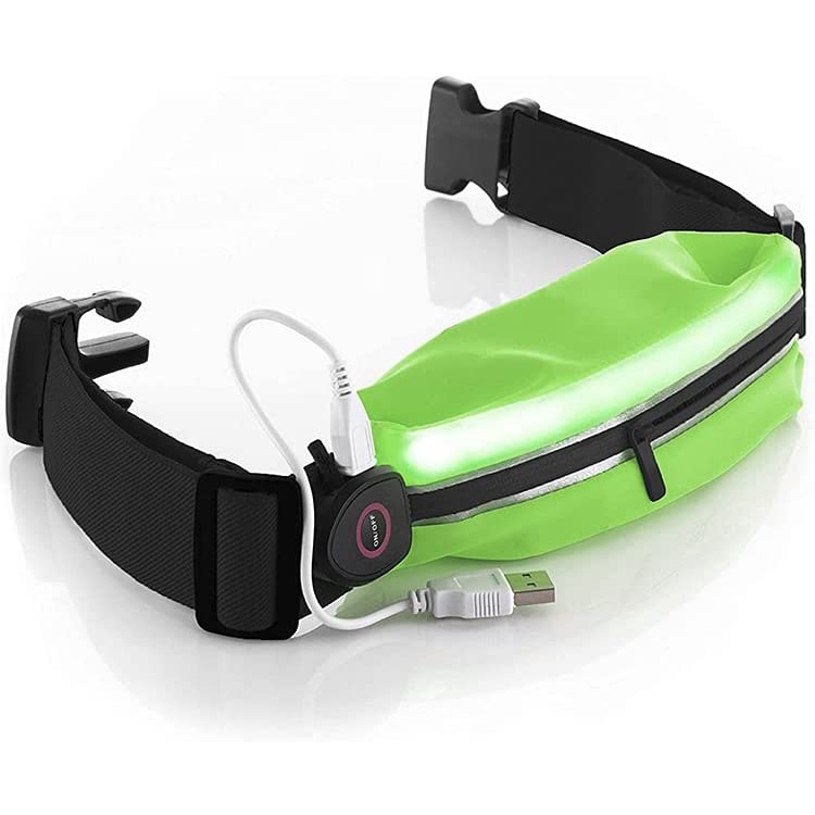 Pochete para corrida LED reflexiva com luz recarregável USB - 3 modos de luz e 2 tiras reflexivas, chave, suporte para telefone celular para corredores, corredores, pedestres, ciclistas, Pochete para esportes