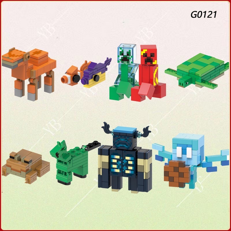 Minecraft Series Mini Figures Iron Golem Zombie Creeper Skeleton Wither Redstone Cube Minifiguras De Blocos De Construção Montados Brinquedos Infantis Série