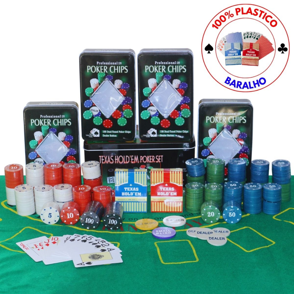 Kit Poker Profissional Em Lata 600 Fichas Texas Hold'em Set Com Baralho Texas Holdem