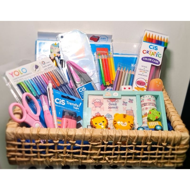Caixa de presente Papelaria Fofa e Criativa kit com 30 itens Premium Material Escolar - Box Select