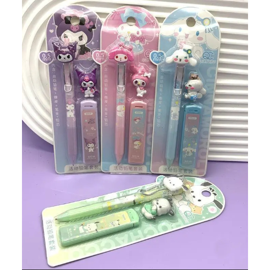 Kit Lapiseira, Grafite e Borracha Turma da Hello Kitty, Sanrio, Material Escolar, kit papelaria fofa