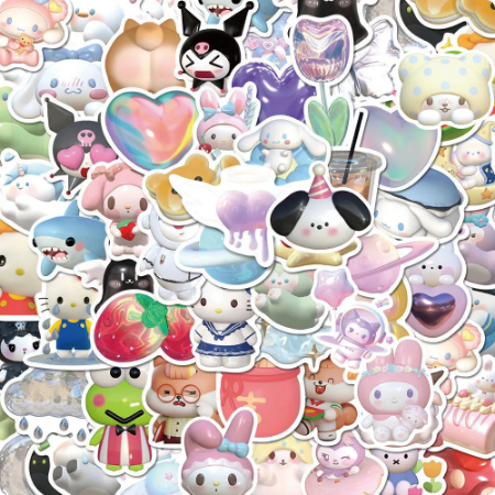 Adesivos Hello Kitty e outros Desenhos Animados Kawaii - kit com 51pcs- A prova d' água - Aleatórios