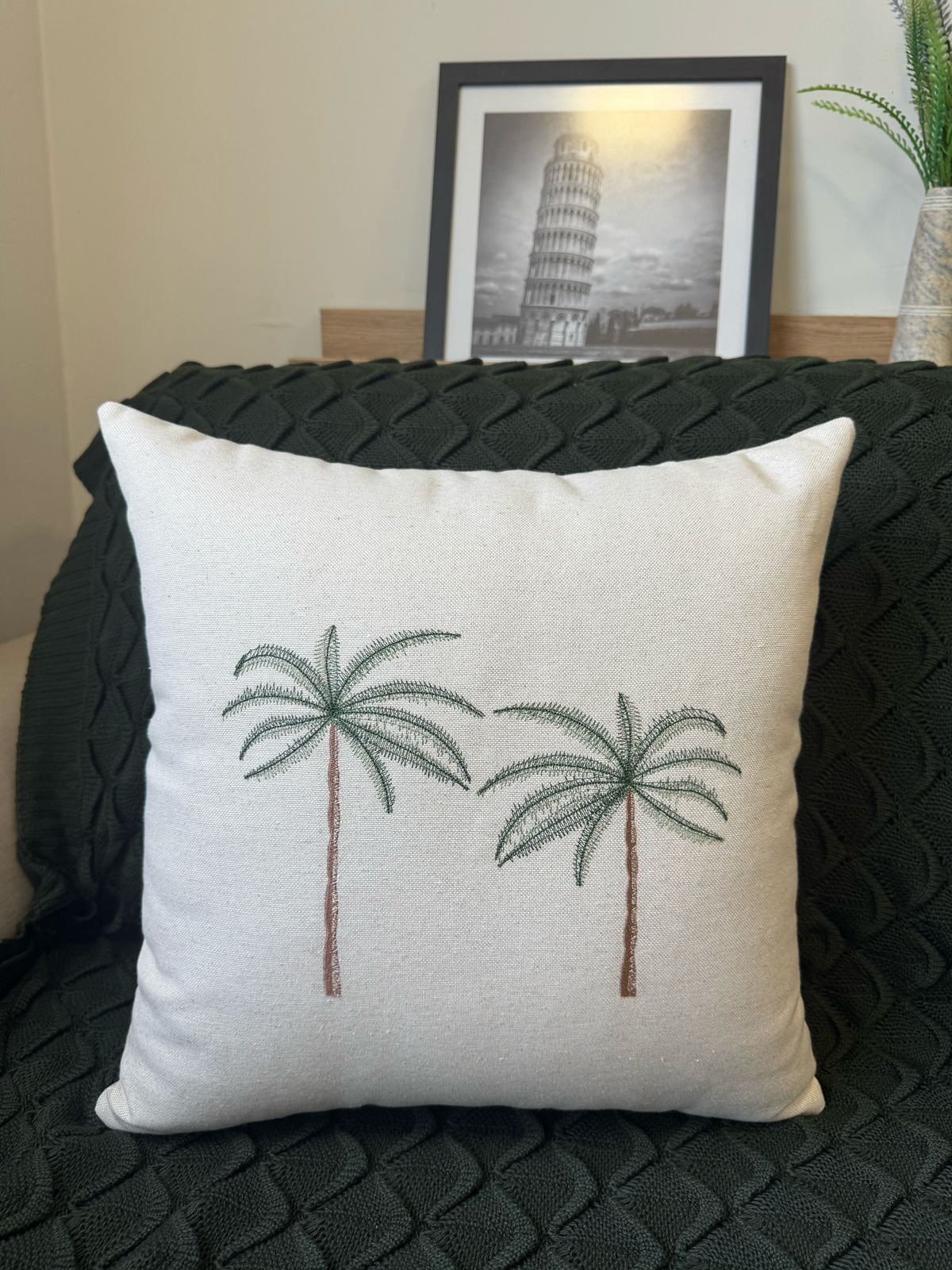 Almofada Linho Bordada Coqueiro Verde 45x45cm Com Enchimento