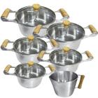 Jogo de Panelas Alumínio Batido Fundido 6 Peças Polida Grossa com Tampa de Vidro