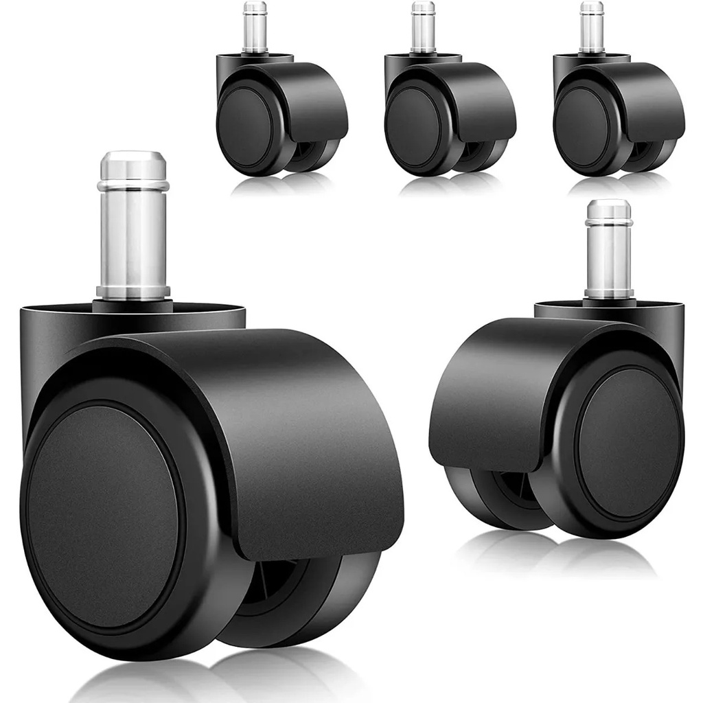 Kit 5 Rodízios Rodinhas Para Cadeira de Escritório Gamer Silicone Anti-risco Pino 11mm