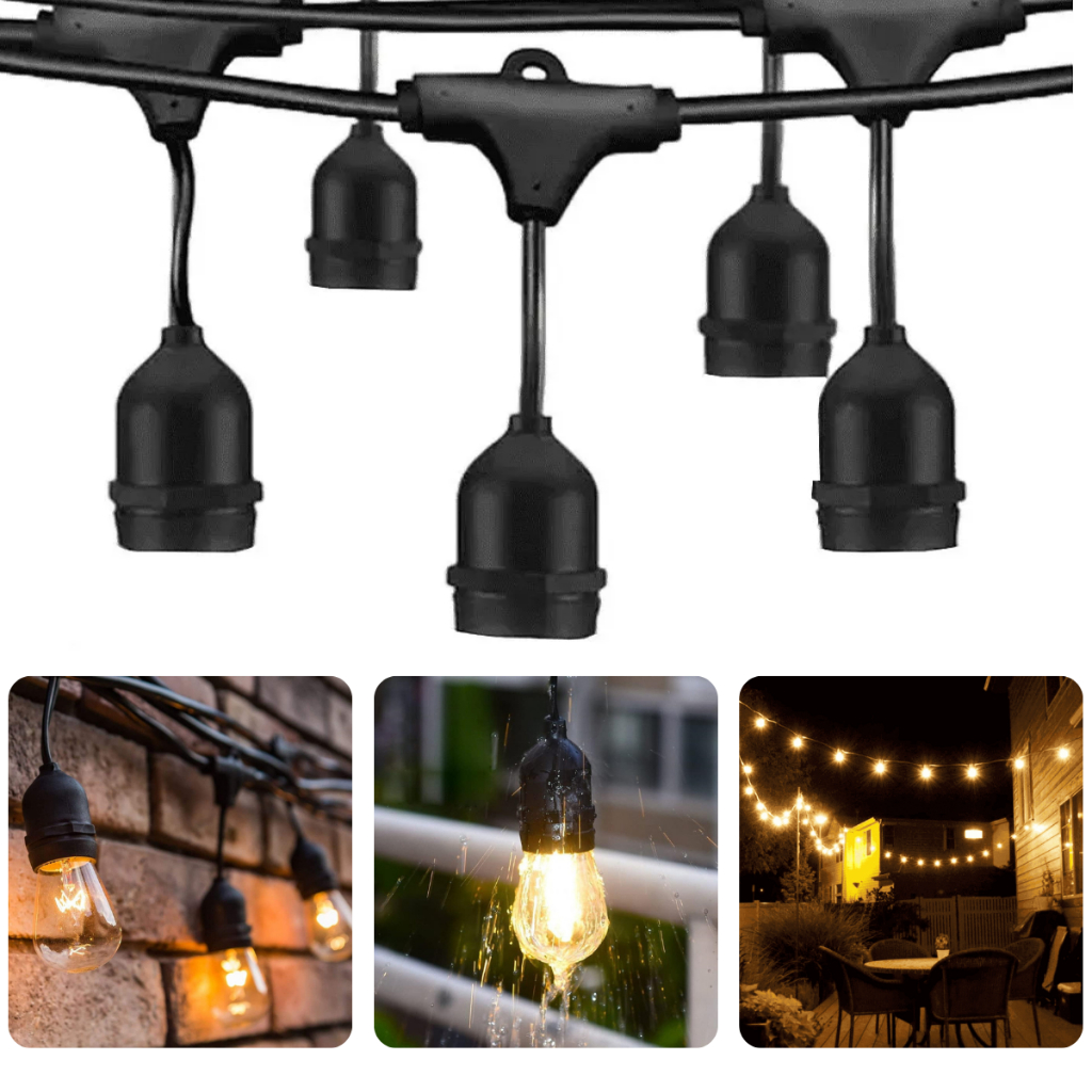 Varal de Luzes Festão Cordão Reforçado de Iluminação Área Externa Decoração Festa 15 Soquetes 15 Metros Preto IP66