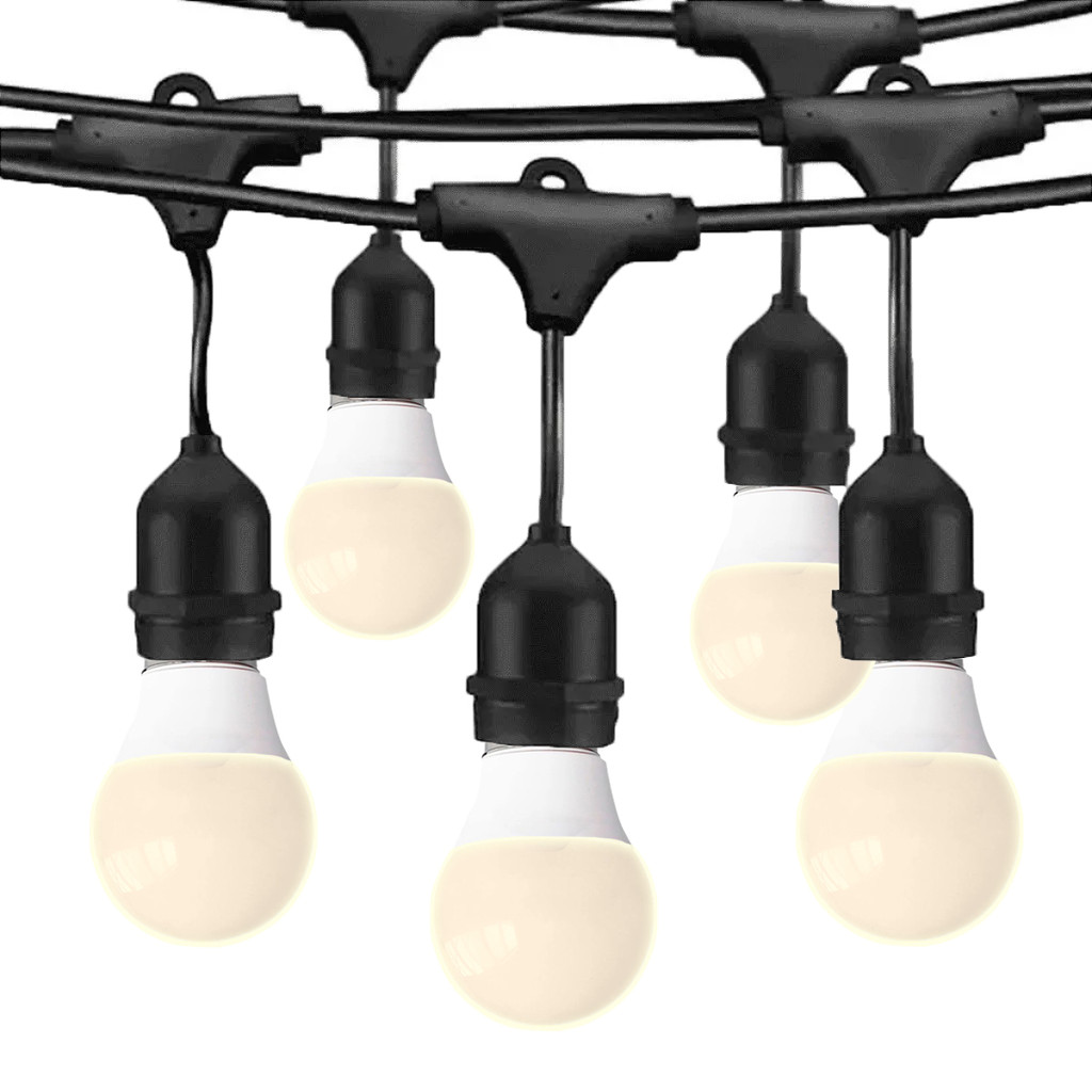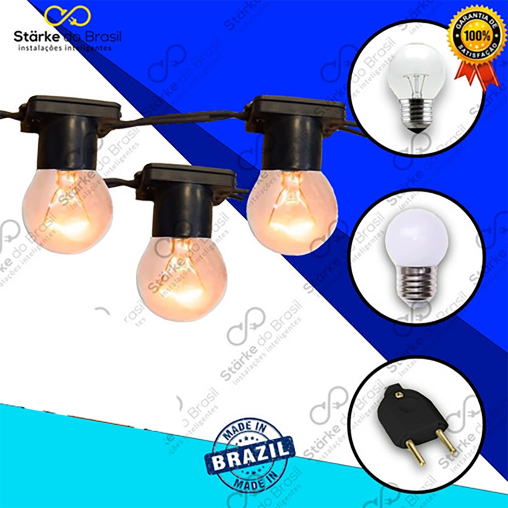 Varal de Luzes Festão Cordão de Iluminação Externa Decoração 15 Soquetes 15 Metros Preto Com Lâmpada Bulbo 9w 3000k
