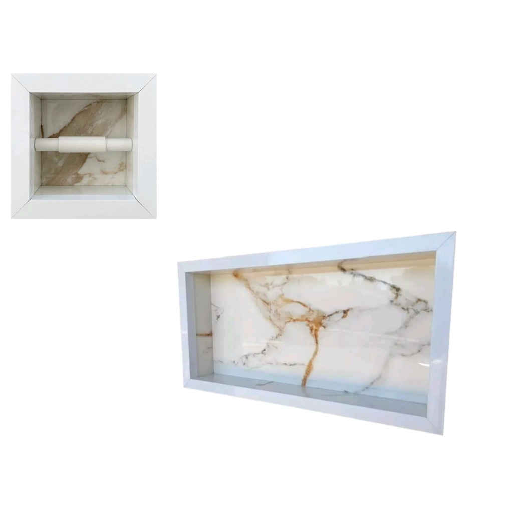 Kit Nicho de Porcelanato e Porta Papel Higiênico de Embutir Gold