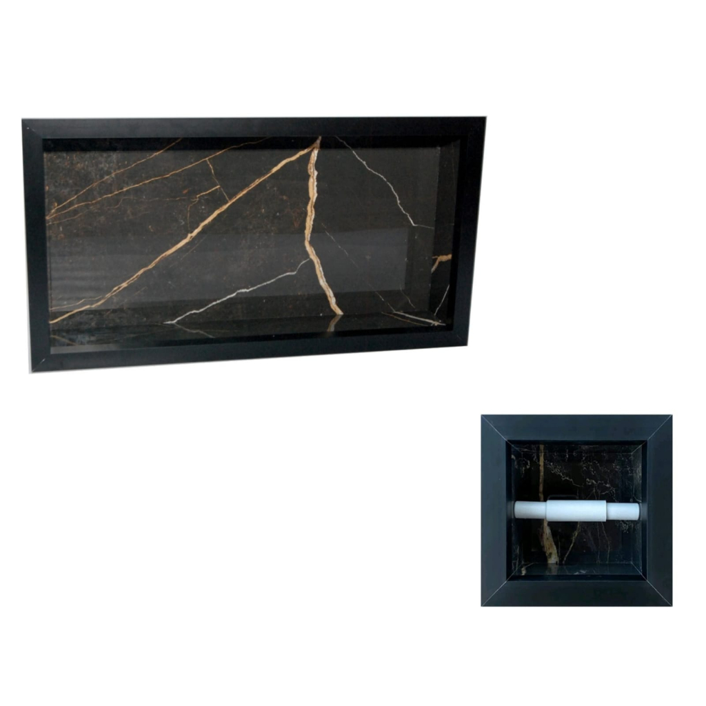 Kit Nicho de Porcelanato e Porta Papel Higiênico de Embutir Preto