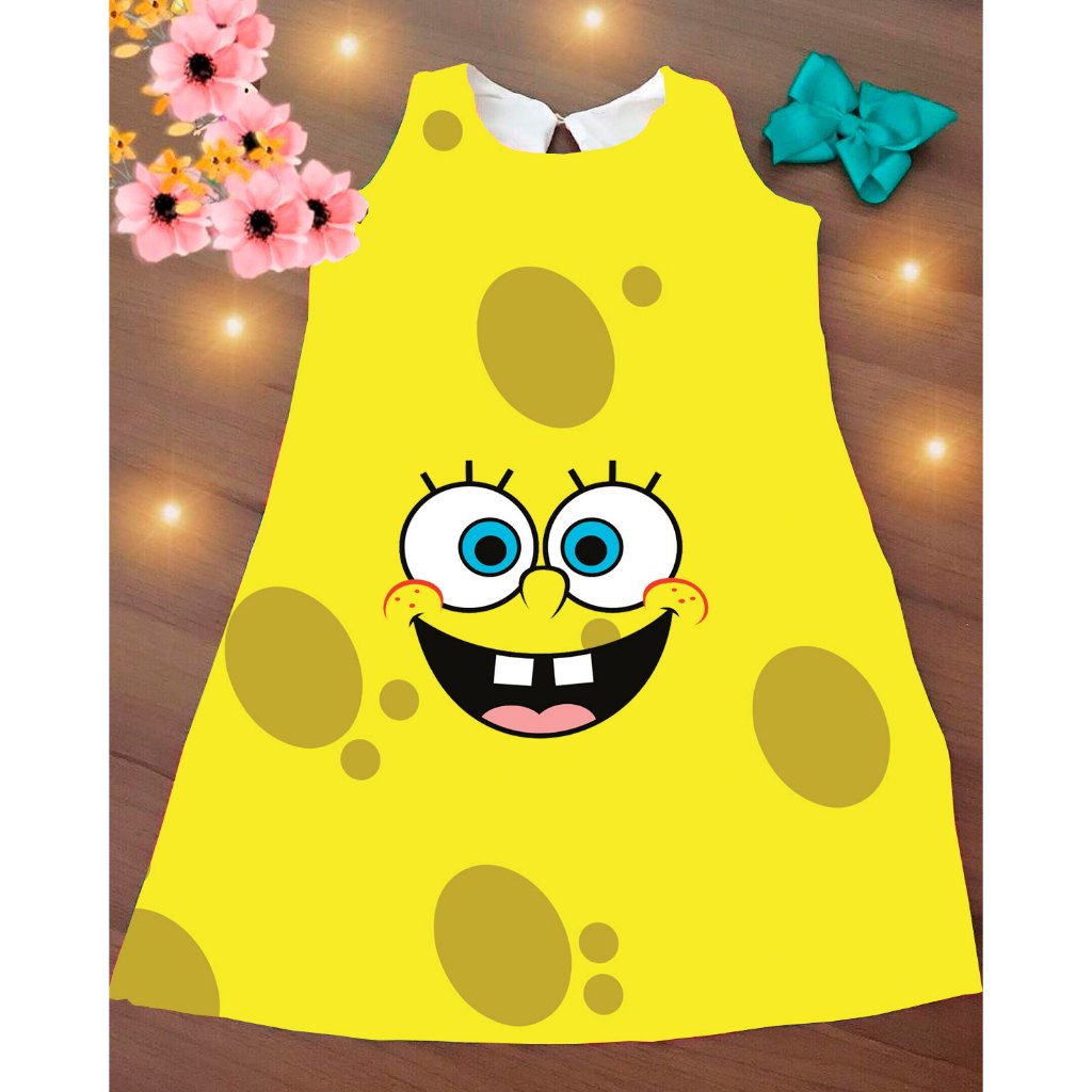 Vestido Infantil Bob Esponja Criança Festa Aniversario Menina Personagem