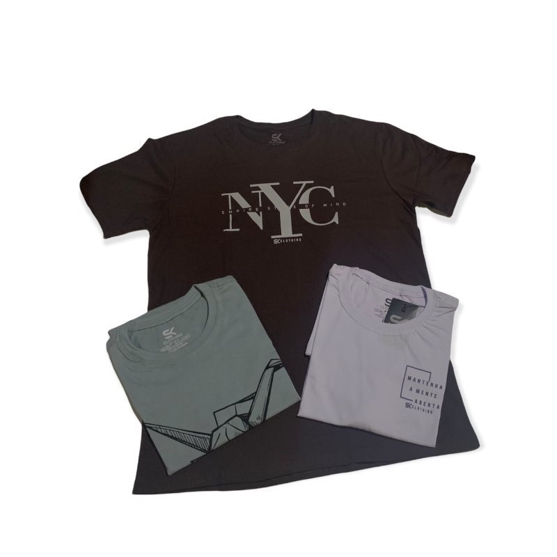 Kit 3 Camisa Gola V Masculina Original Sk Clothing P Ao Gg E Plus Size (g1, G2, G3, G4, G5, G6, G7, G8, G9) Camiseta 100% Algodão Tamanho Grande T-shirt Tamanho Especial