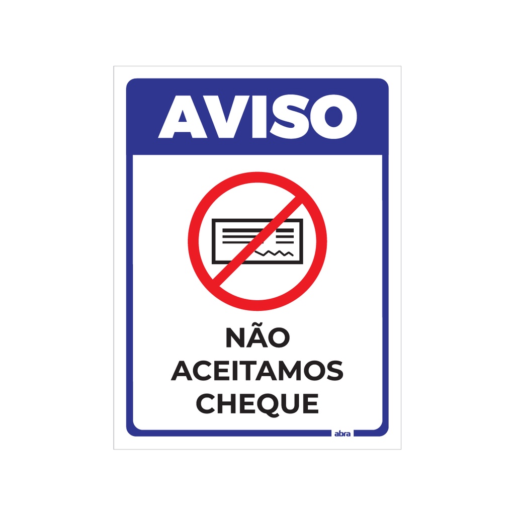 Placa De Sinalização Aviso Não Aceitamos Cheque Pvc 15x20 Cm