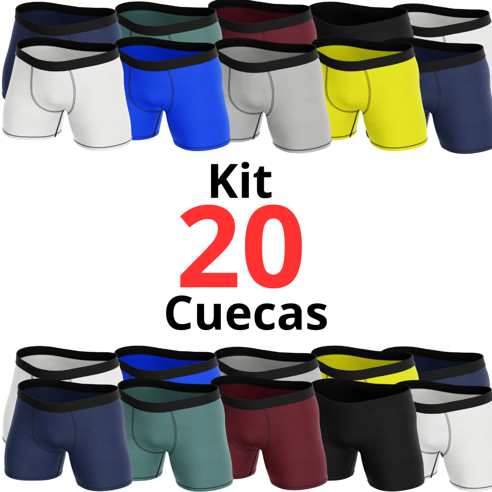 Kit 20 Cuecas Box Boxer Microfibra Original Adulto Masculino