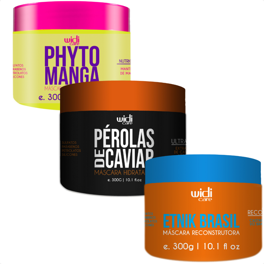 Phyto Manga 300g + Etnik 300g + Pérolas de Caviar 300g Máscaras Widi Care