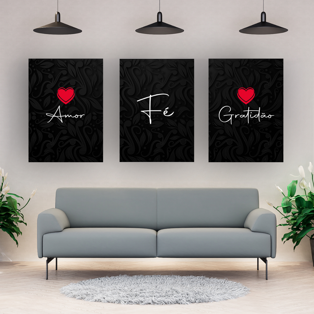 Kit 3 Quadros Decorativos Frases Motivacionais Amor Fé Gratidão Alta Qualidade Escritório Sala Quarto Varios modelos
