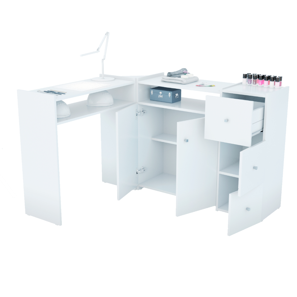 Mesa em L para Manicure com 2 Portas – Profissional e Espaçosa