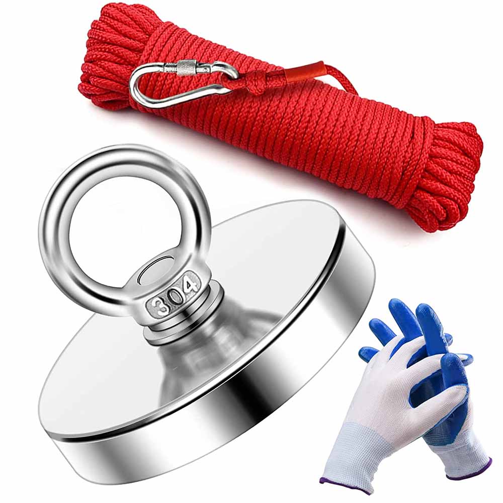 Ímã Pesca Magnética Potente 80kg Neodimio Kit Corda E Luva Alta Qualidade