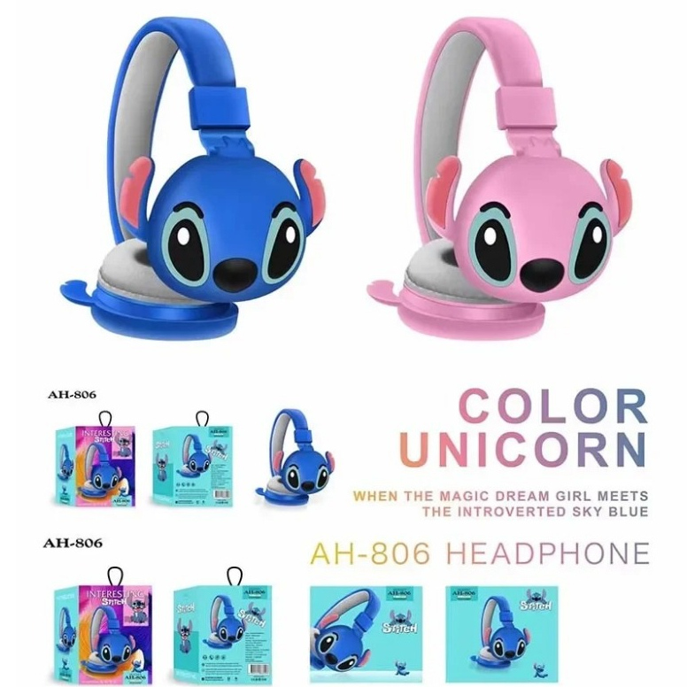 Novos Fones De Ouvido Bluetooth Sem Fio Stitch AH-806 HIFI Estéreo Dobráveis Com Microfone Anime Cartoon Presente Para Crianças