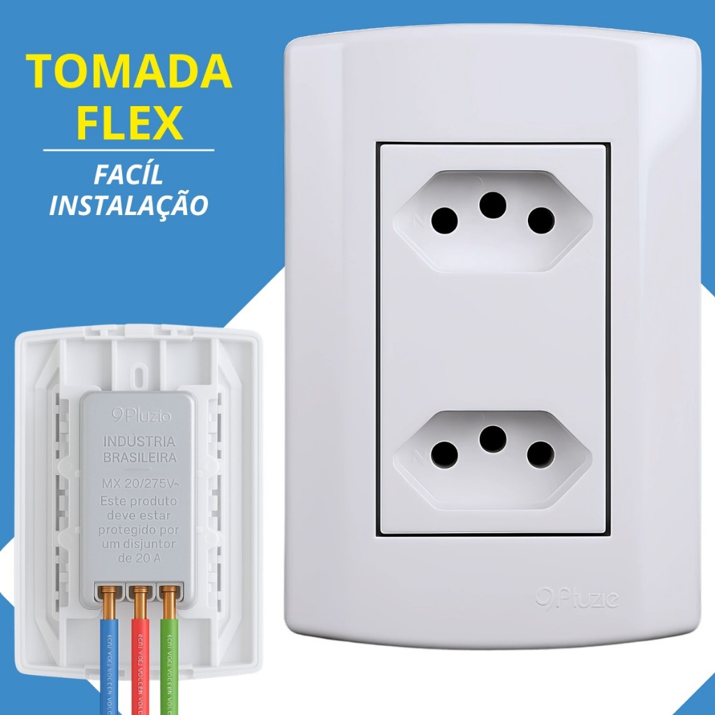 Tomada Dupla Flex 10A e 20A Amperes Monobloco Pluzie