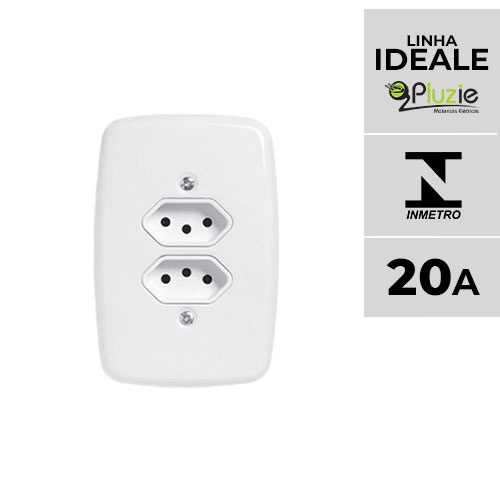 Tomada Dupla 20A Amperes Monobloco 250V C/ Placa 4x2 Pluzie Linha Fácil Ideale 2 Tomadas