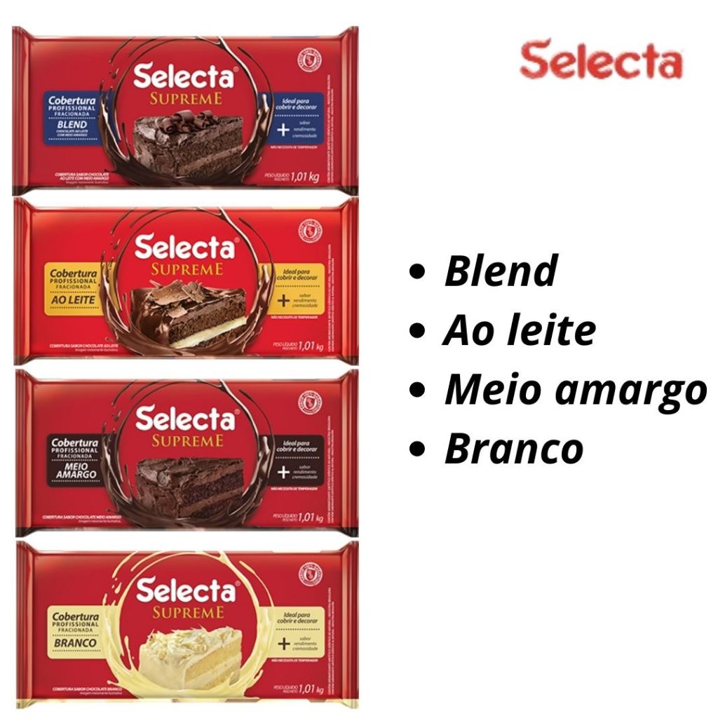 Cobertura em barra selecta supreme 1kg blend, meio amargo, ao leite e branco