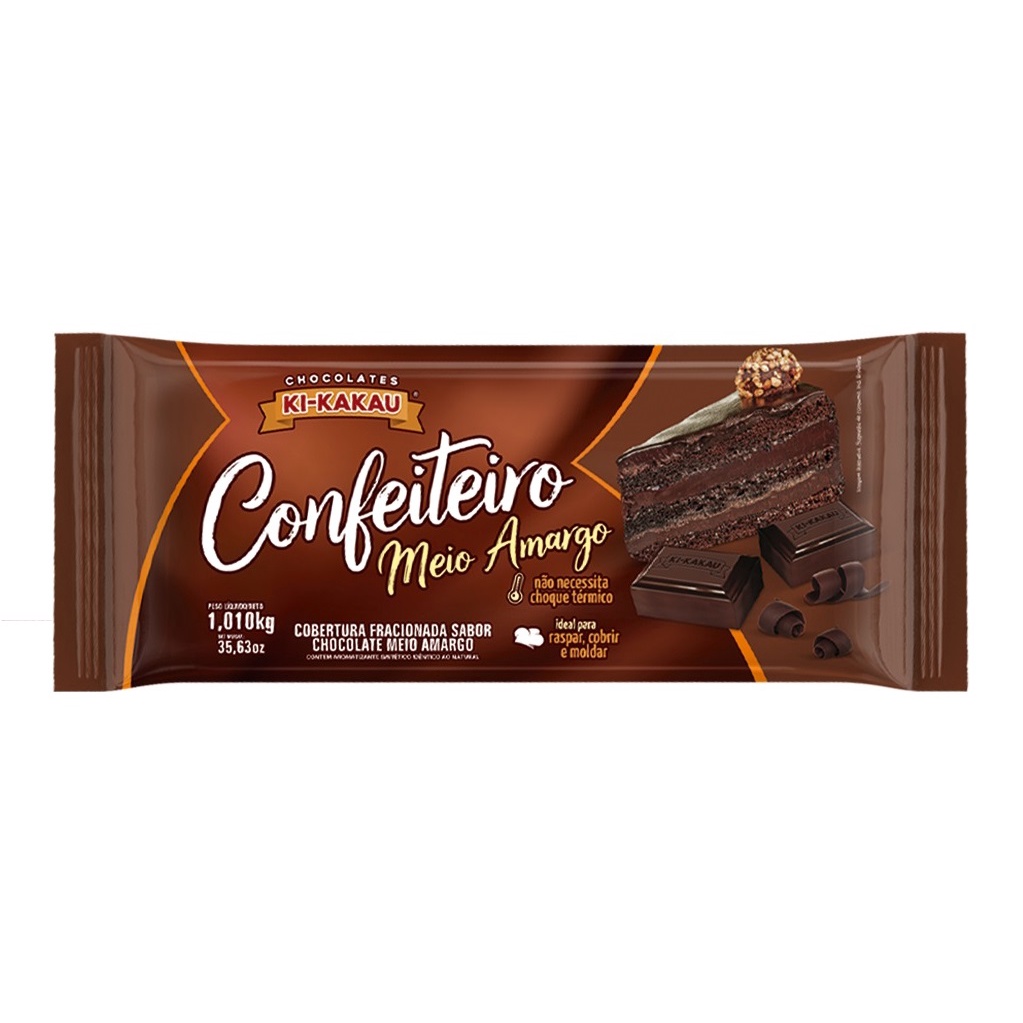 Cobertura de Chocolate Confeiteiro Meio Amargo Barra 1,01KG